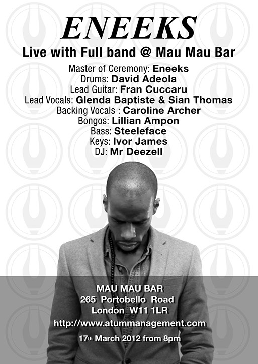 Live with Full band @ Mau Mau Bar, 265 Portobello Road, London W11 1LR | Click image for full details